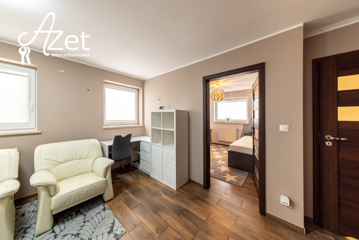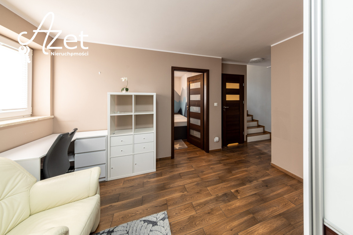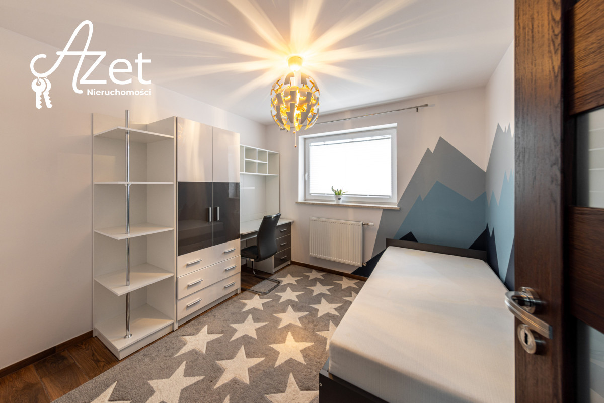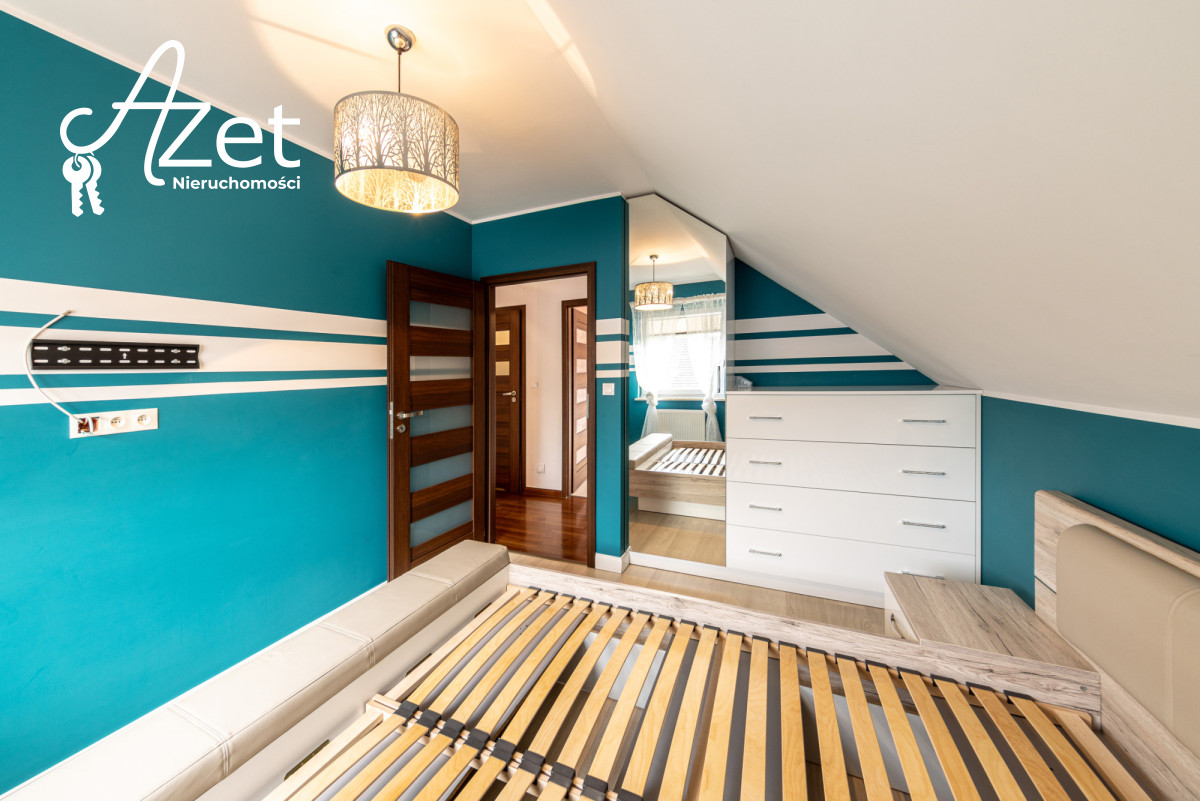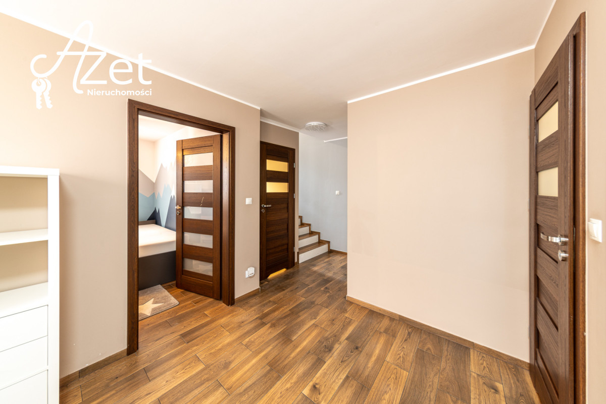 Tutaj kryje się prawdziwy atut tej nieruchomości. Urządzony pokój dziecięcy, przestronna garderoba, druga łazienka z prysznicem i toaletą, praktyczna kotłownia oraz schowek na wszystkie niezbędne rzeczy. Ta część domu daje wiele możliwości - od przestrzeni dla nastolatków po domowe biuro czy siłownię.